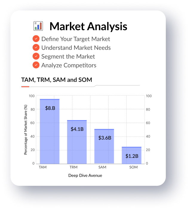 Comprehensive market research lays the foundation for a winning GTM strategy. We analyze your Total Addressable Market (TAM), growth potential, and competitive forces to shape a clear market entry plan.