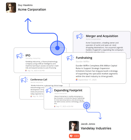 Every day, we analyze your prospects’ social and web activity (podcasts, webinars, videos), along with company initiatives, news, buying signals, financials, HR developments, and more.