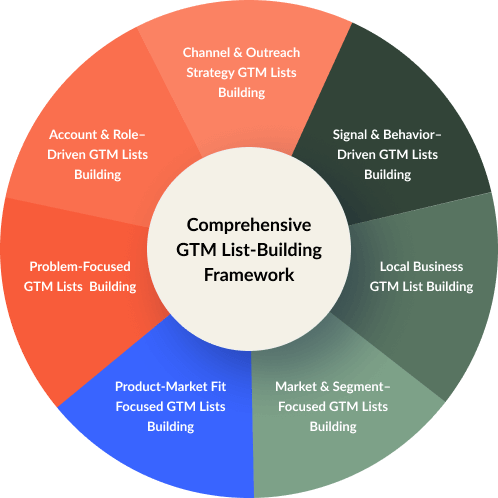 Our data-driven GTM list building services empower business owners, sales teams, and marketing leaders with high-quality, verified prospects. With human validation and AI support, you minimize GTM risks through deeper research, clearer audience definition, and a sharper understanding of competitors. With accurate data and strong insights, your go-to-market strategy becomes more focused, efficient, and effective.