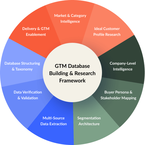 Build specialized, research-driven GTM prospect databases for your high-impact Go-To-Market strategy to boost performance, minimize costly mistakes, and reduce risk.